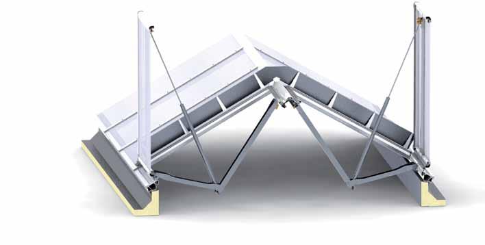 L’EFC S CI-System, con battente singolo o doppio, può essere integrato nel lucernario continuo in numerose varianti per ottenere la superficie di evacuazione ideale per ciascun edificio.