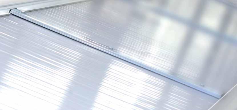 • Lastre in materiale plastico adeguate alle esigenze energetiche dell’edificio (spessore lastre da 10 a 32 millimetri) con ottimi coefficienti di trasmittanza termica che raggiungono anche valori di 1,2 W/(m²K).