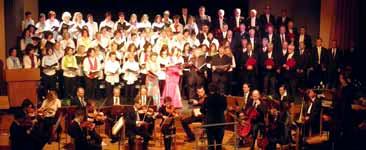 Renate Daporta Jöchler mit Michl Gamper. Orchester, Chor und solisten des benefizkonzerts.