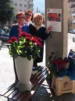 Die sVP Frauen von Klausen bei ihrer jährlichen Primelverkaufsaktion. in der bildmitte Renate Daporta Jöchler mit bürgermeisterin Maria Gasser Fink.