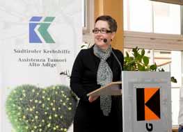 di persona toccata da vicino dalla malattia, ha colpito profondamente noi tutti. Il suo assessorato si occupa da sempre in modo esemplare della causa dei malati di cancro. L’Alto Adige possiede una sanità pubblica esemplare in ogni campo con strutture che molti ci invidiano. Adesso sappiamo anche, che chi regge le sorti di questa gigantesca macchina organizzativa, si distingue non solo per lungimiranza politica, ma anche per grande umanità e sensibilità!