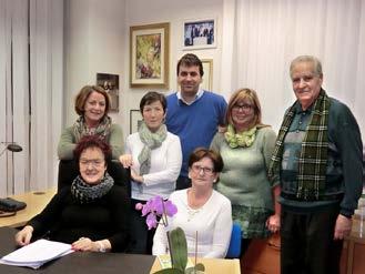 Der neue Vorstand, frisch in Amt und Würden (v. l. n. r.): Margareth Zwick Steck, Elisabeth Platzgummer Heel, Helga Wielander Schönthaler (Präsidentin), Hinten stehend von links: Heinrich Stecher, Bernhard Staffler, Margareth Telser Kurz ( Vizepräsidentin), Rebekka Wallnöfer Lechner, Kurt Kaufmann.