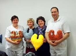 Martha Erlacher mit Monika Wolfgruber bei der Übergabe der Herzkissen an Primar Dr. Bruno Engl und Schwester Gaby.