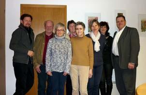Il nuovo direttivo fresco di nomina (da sx): Margareth Zwick Steck, Elisabeth Platzgummer Heel, Helga Wielander Schönthaler (presidente), in fondo in piedi: Heinrich Stecher, Bernhard Staffler, Margareth Telser Kurz (vice), Rebekka Wallnöfer Lechner, Kurt Kaufmann.