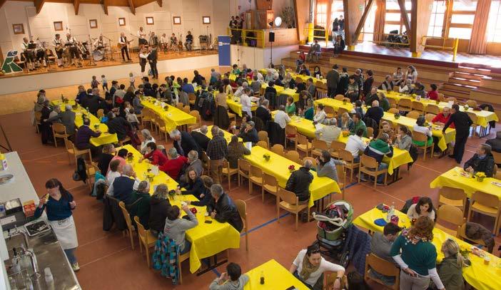 La sala parrocchiale a Brunico tutta addobbata per la festa.