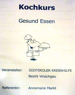 Gesundheitstage Im Rahmen der Gesundheitstage Schlanders organisierte die Südtiroler Krebshilfe einen Info-Abend über gesunde Lebensweise mit Traudl Schwienbacher, Gründerin der Ultner Winterschule: „Die vier Jahreszeiten als vier Lebenszeiten“.