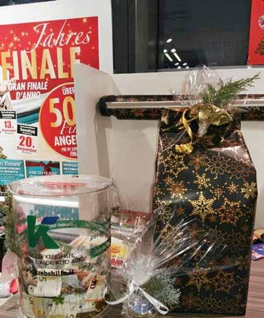Bei Maxi Mode in Eppan, Tigotà in Leifers und bei Jungmann in Neumarkt machten sich in der Vorweihnachtszeit zahlreiche Helferinnen mit Schere, Papier, Schleifen und Bändern zu scha en, um Päckchen gegen eine Spende zu machen. Das Verpackungsmaterial stellten die Geschäfte, die Frauen hingegen Zeit und Phantasie und die Käufer lohnten es mit einer Spende zugunsten der Krebshilfe.