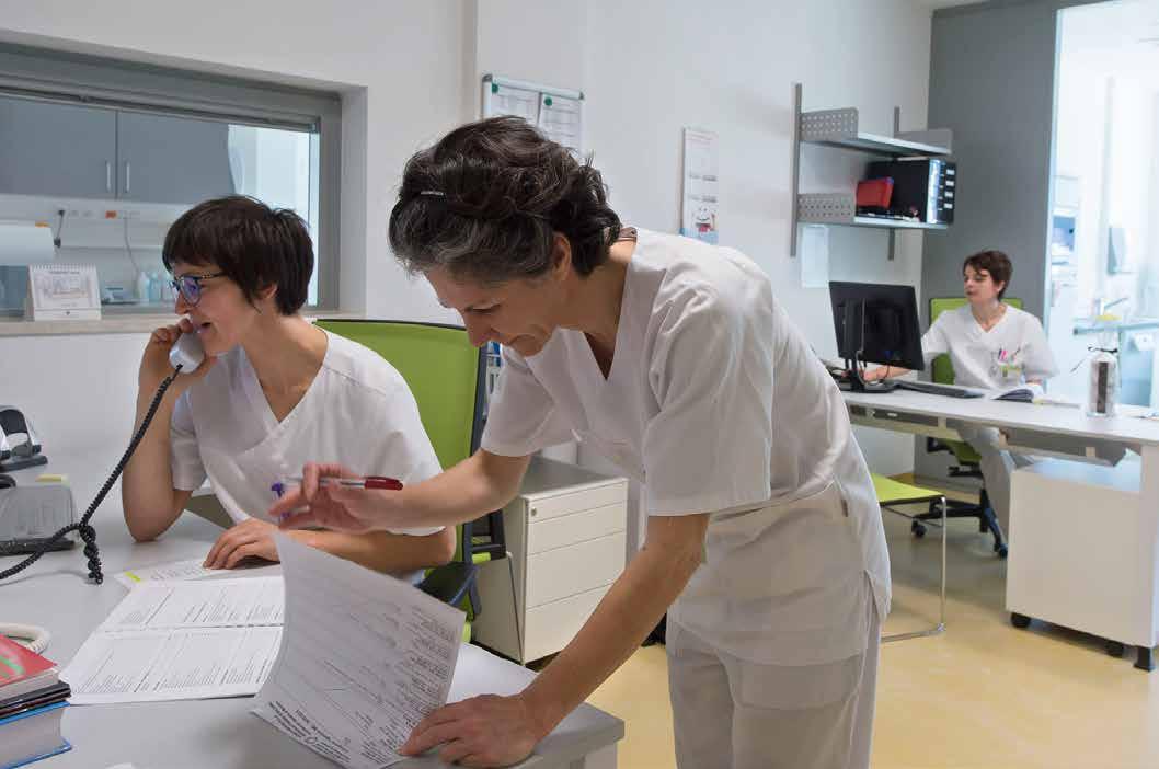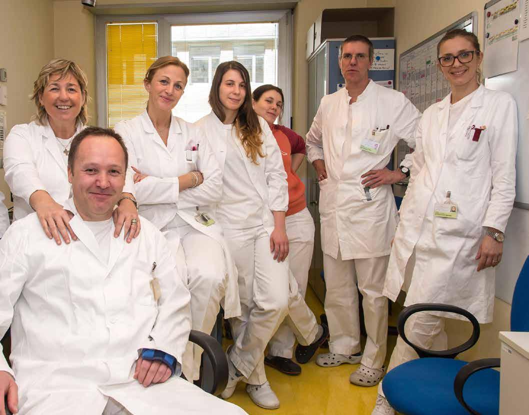 Die Schwestern gehen mit großer Kompetenz und Ruhe ihrer Arbeit nach und sorgen dafür, dass die Patienten sich wohl fühlen. Ein buntgemischtes Team aus Onkologie, Gynäkologie, Innerer Medizin und Orthopädie.