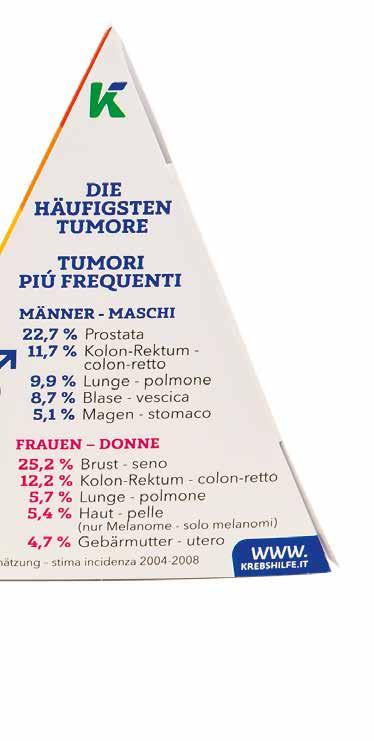 Die Südtiroler Krebshilfe hat sich etwas Originelles einfallen lassen, um die Bevölkerung kurz und prägnant über das Thema Krebs und wie man sich schützen kann, zu informieren. Eine handliche Papierpyramide auf deren drei Seiten die wichtigsten Informationen rund um das Thema Krebs und Vorsorge zusammengefasst sind. „Die Pyramide enthält die wichtigsten Zahlen zu den Krebserkrankungen in Südtirol, die zehn Regeln des Europäischen Krebskodex sowie eine Nahrungsmittelpyramide, die auf einem Blick aufzeigt, worauf man bei der Ernährung achten sollte“, erklärte Ida Schacher. Eine Seite Zahlen, eine Seite konkrete Anleitung zum gesunden Essen und