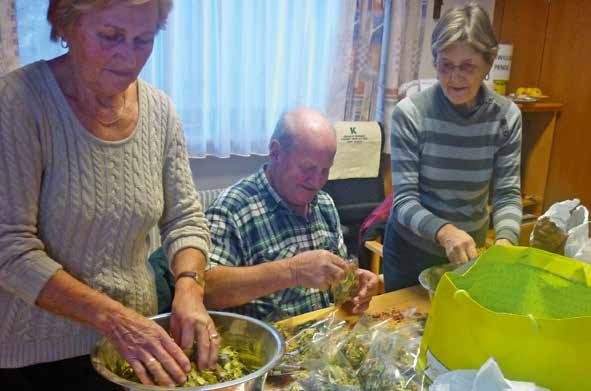 Infostand Weihnachtsmarkt Schlanders Fleißige Hände beim Abfüllen der Teesäckchen, die an Interessierte beim Weihnachtsmarkt verteilt wurden.