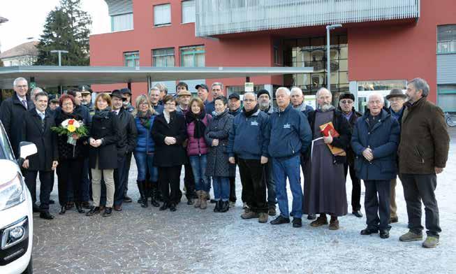 Dank einer großzügigen Spende der Rai eisenkasse Salurn konnte der Bezirk Unterland Überetsch ein neues Auto für die Hausbesuche anscha en. Das Fahrzeug wurde vor der Filiale von Pater Markus geweiht, anwesend waren auch die führenden Angestellten der Raika liale, der Bürgermeister von Neumarkt, Horst Pichler, Vertreter der Finanzwache sowie der Bezirksvorstand und die freiwilligen Fahrer.