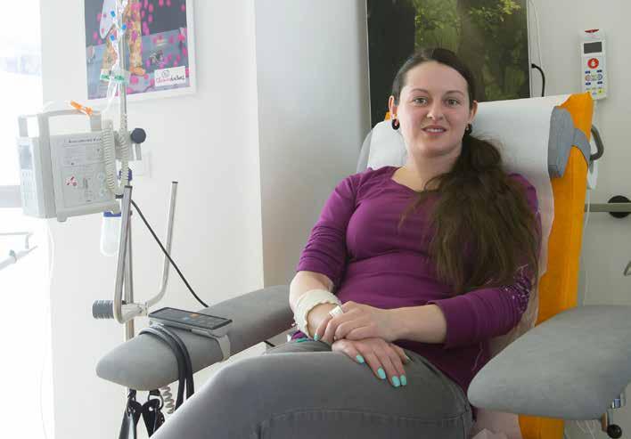 In media sono otto i pazienti che vengono ogni giorno per la chemioterapia. La mattina fanno l’esame del sangue direttamente nel reparto. Se medico e farmacista danno l’ok, possono fare la chemioterapia. Le sacche per l’infusione vengono direttamente preparate in reparto seguendo il protocollo prestabilito per ogni paziente dal tumorboard. Il reparto dispone infatti sia di un moderno laboratorio citostatico completamente sterile che di due farmacisti, la dott.ssa Verena Niederwanger e il dottor Martin Großgasteiger.