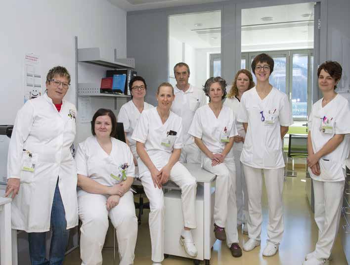 Un'ottima squadra, da sx. a dx.: La dott.ssa Ulrike Felder, Katja Mair, Rosi Declara, Margareth Reier, Ulrich Messner, Monika Pellegrini, la dott.ssa Verena Niederwanger, Anna Burgmann e Heidi Niederkofler