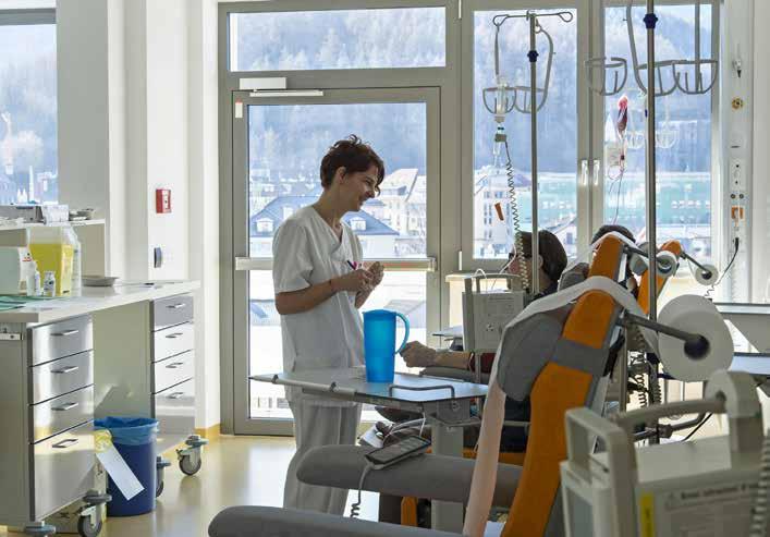 È come avere le piste di Plan de Corones e il Castello di Brunico proprio lì davanti, a portata di mano. La grande sala piena di luce del day hospital oncologico ha dieci postazioni. Dal due novembre dell’anno scorso i pazienti di tutti i reparti oncologici dell’ospedale di Brunico fanno qui la loro chemioterapia.