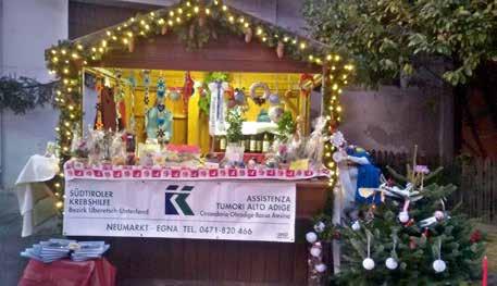 Nel 2015 anche a San Giacomo è stata allestita una bancarella per il mercatino di Natale oltre alla casetta in piazza a Laives. Grazie all’impegno di Lorena, delle sue amiche e delle donne del gruppo di martedì che hanno resistito anche alle temperature rigide per vendere gli oggetti fatti da loro a favore dell’associazione e in segno di solidarietà con i malati. Grazie per il vostro impegno!
