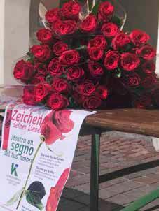 Vendita delle Rose È l’evento clou della nostra attività annuale, la vendita delle rose. E proprio per questo motivo ogni anno sono in tanti ad aiutarci. Anche quest’anno il Venerdì Santo ci siamo trovati presso la giardineria Mahlknecht a Brunico per preparare le rose da vendere davanti a tutte le parrocchie la domenica di Pasqua. Quest’anno abbiamo venduto 15.600!