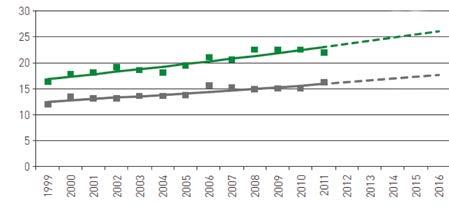 Lungenkrebs bei Frauen: . Europa-Trend bezüglich Häufigkeit und Sterblichkeit im Zeitraum 1999 -2016.