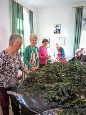 Mercatino Le volontarie preparano le corone d’avvento.