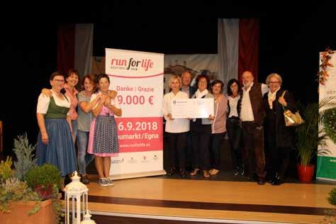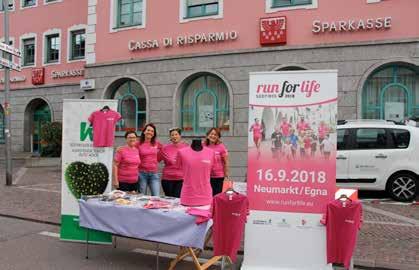 „Run for Life“ Zum zweiten Mal wurde dieser Benefizlauf in Neumarkt ausgetragen. Alfred Monsorno mit dem Organisationskomitee Inge Girardi und Norbert Bertignoll haben wieder einen Teil der Einnahmen der Südtiroler Krebshilfe gespendet. Die Freiwilligen der Krebshilfe waren auch dabei und haben Kuchen und Süßigkeiten verkauft. Herzlichen Dank den Organisatoren und allen Freiwilligen, die an diesem Sonntag im Einsatz waren.