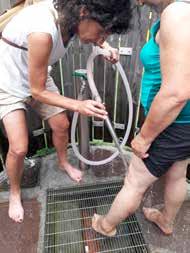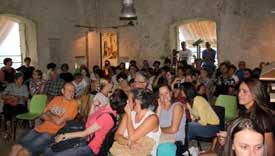 Aufmerksame Zuhörer scharten sich um Rita, als sie die Entstehung und die Verarbeitung des "Voltruier“ Kaffees erklärte. Natürlich gab es nachher eine Verkostung des Getränkes und auch eine herzhafte Marende.