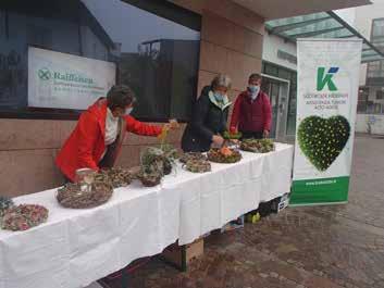 Am 25. September und am 24. Oktober wurden bunte selbstgebastelte Herbstkränze am Kornplatz in Meran und vor der Raiffeisenkasse in Naturns zum Erwerb angeboten. Die Aktion war eine rundum gelungene Veranstaltung, die auch im nächsten Jahr ihre Fortsetzung finden soll.