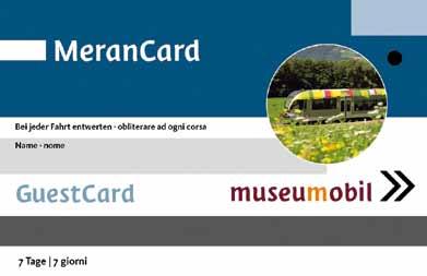 • Merancard**: Gratis-eintritt in 80 südtiroler Museen und kostenfreie nutzung aller öffentlichen verkehrsmittel