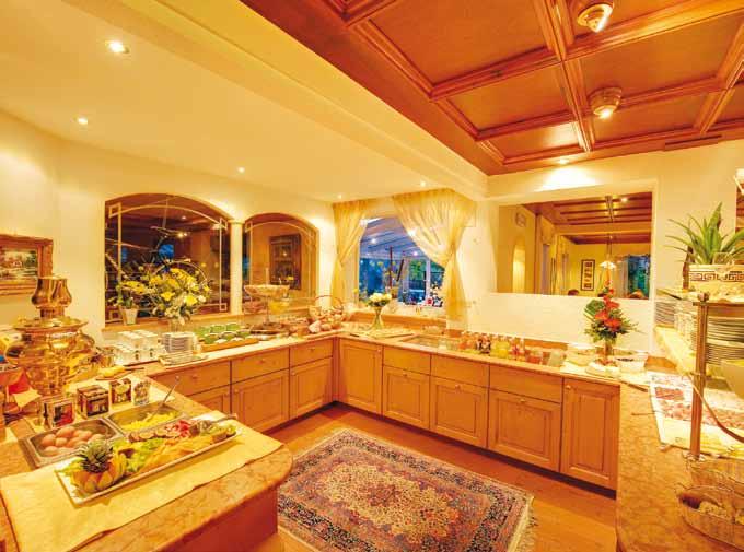 • Frühstücksbuffet mit Südtiroler Qualitätsprodukten und Vitalecke von 07.30 bis 10.00 Uhr Süße Köstlichkeiten für den kleinen Hunger gibt es an unserem Kuchenbuffet von 14.00 bis 17.00 uhr