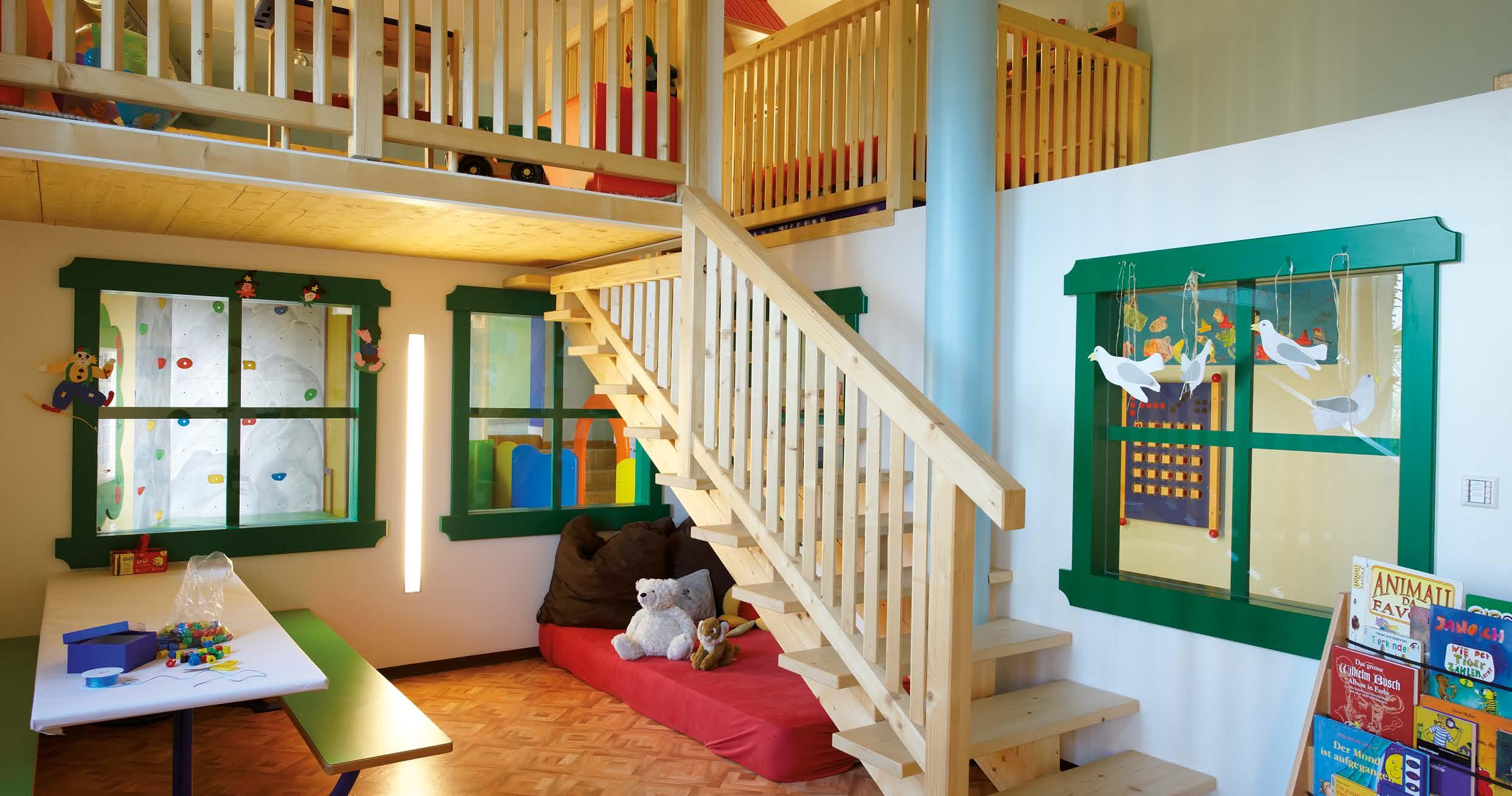 • Kinder- und Jugendwelt auf 200 m² mit Puppenecke, Legoecke, Leseecke, Bauecke, Bastel-, Mal- und Knetecke, Schlafecke, Kuschelecke und toller Spielauswahl