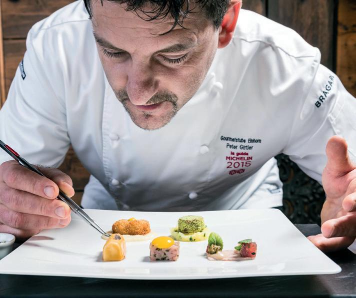 Außergewöhnlich komponierte Menüs, zubereitet vom mit 2 Michelin-Sternen und 3 Gault-Milau Hauben gekrönten Starkoch Peter Girtler und seinem Team, serviert im erlesenen historischen Rahmen: Einen Gourmetabend voller Genuss in der Einhornstube kann man schwer beschreiben, den muss man erleben!