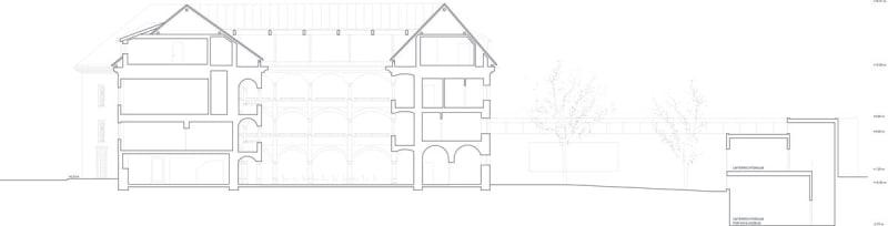 Die Eingri e, die im Altbau vorgenommen wurden, wurden mit dem Ziel durchgeführt, den Charakter des historischen Gebäudes zu unterstreichen und seine originale Struktur zu sichern. Der Neubau wurde als eine Ringmauer konzipiert, die die Dominanz des Ragenhauses betonen sollte. Zugleich hat man eine Verbindung zwischen beiden Gebäuden gesucht, die durch neue Materialien und Ober ächen gescha en wurde.