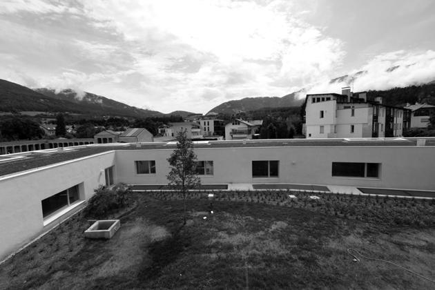 Sollte ich die Musikschule Bruneck in zwei Sätzen de nieren, dann würde ich das Ragenhaus als ein historisches, bürgerliches Gebäude mit einem traumhaften Landschaftsbild als Hintergrund beschreiben und die Erweiterung als eine Ringmauer, die den Monumentalcharakter des Ensembles bekräftigt.