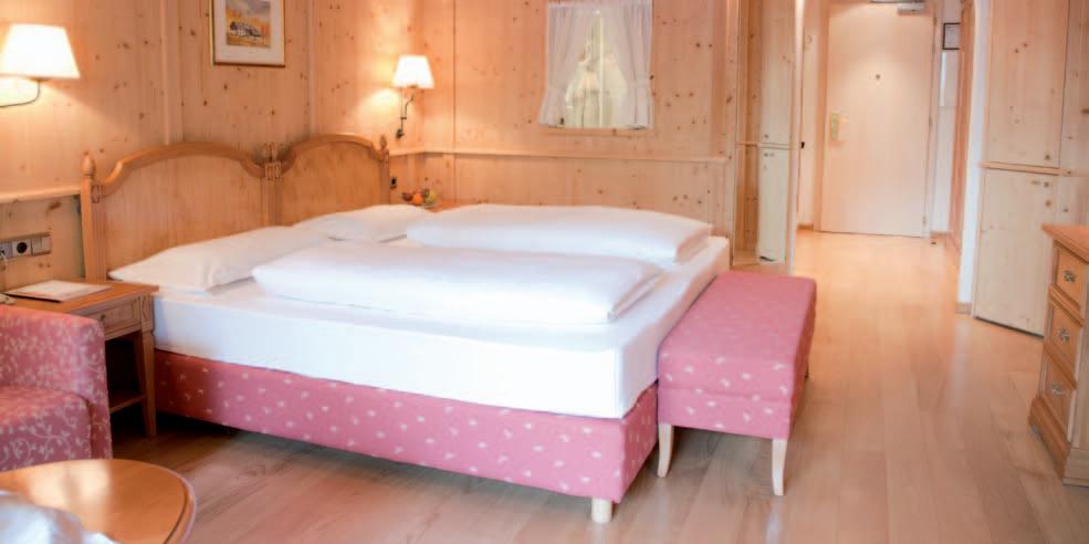 Let yourself be enchanted by the magical atmosphere we’ve specifically created to meet the individual, personal requirements of our guests. You can choose from 13 different types of rooms, so you can easily find the setting that’s most suited to your needs and expectations. There are elegant double rooms furnished in classic style and with a host of services, spacious and comfortable rooms with a large restful bed and an inviting balcony, the romantic Junior Suite with luxurious wall coverings in Tyrolean pine (whose fragrance permeates the entire surroundings), and even an original duplex apartment with two double beds…