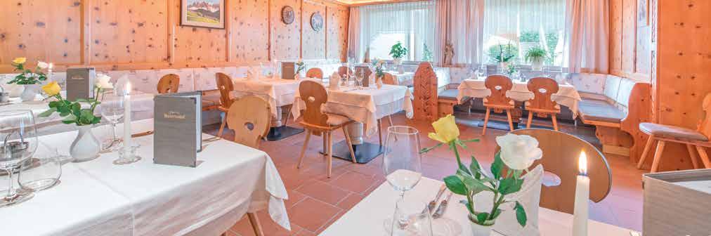 Nella nostra accogliente sala da pranzo Vi saranno servite prelibatezze culinarie locali e internazionali, accompagnate da vini pregiati.