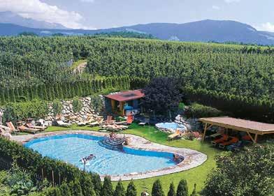 Come discover our Wellness oasis and finnish sauna, turkish steam bath, “Biosauna”, infra-red chamber, whirlpool, solarium, relaxation room, outdoor swimming pool, or the sunbathing area amid the apple trees. We’ll also be happy to provide you with relaxing massages, facial and body treatments, manicures and pedicures.