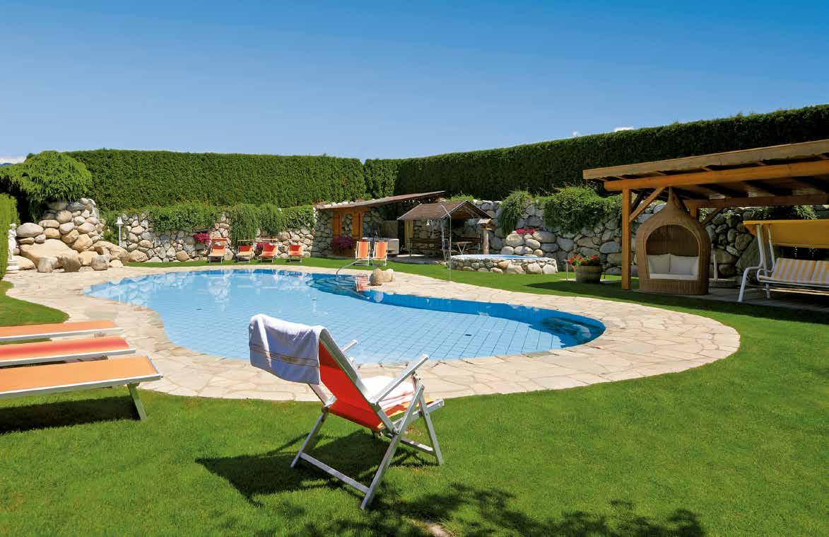 Immergetevi nella nostra oasi di benessere con sauna finlandese, bagno turco, biosauna, cabina a infrarossi, whirlpool, solarium, sala relax, piscina all’aperto o prendete il sole sul prato, fra gli alberi di melo. Verrete inoltre coccolati con i nostri massaggi, i trattamenti per il viso e per il corpo, la manicure e la pedicure.