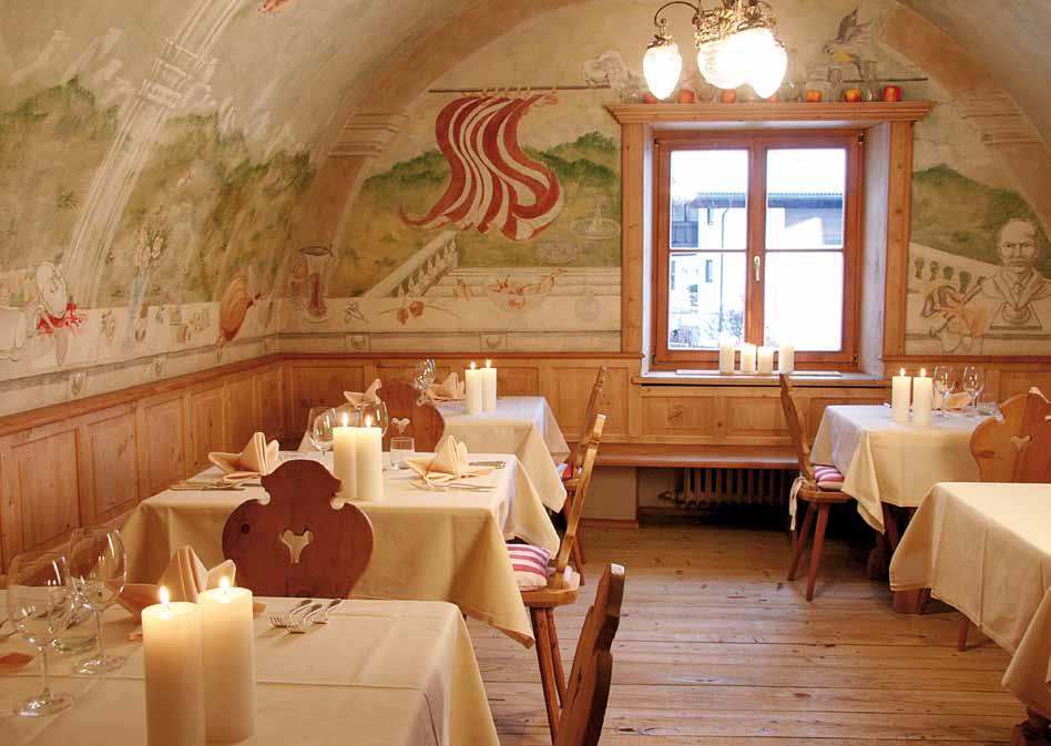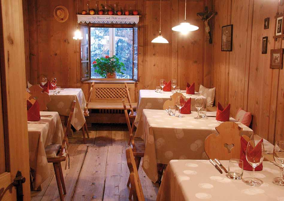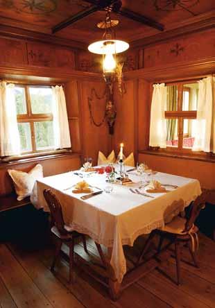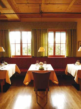 Zu Ihrer Erholung trägt ebenfalls der gepflegte Rosengarten mit seiner Blumenpracht bei. Kulinarisch werden bei uns Frische und angenehme Bodenständigkeit großgeschrieben und von unserem langjährigen Küchenteam geschmackvoll umgesetzt. Auch der Weinkeller wird sorgfältig gepflegt und birgt die eine und andere mundende Überraschung. Der kleine Hunger zu Mittag kann im stilvollen Restaurant oder im Sommer im dazugehörigen Garten unterm Kastanienbaum gestillt werden; die alten Bauernstuben und der gemütliche Speisesaal laden zum Abendessen ein.