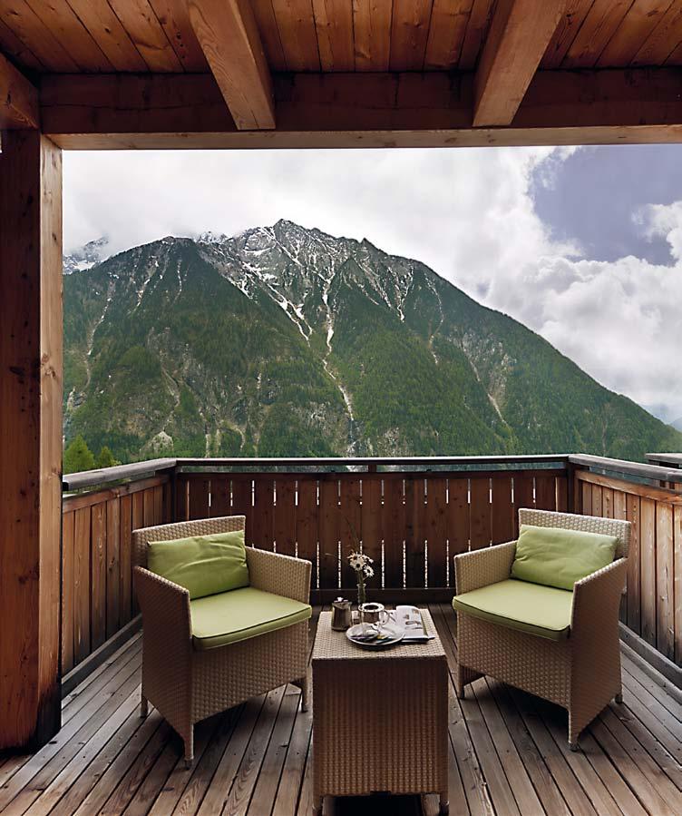 niente da una cava di Vilgraten nel Tirolo Orientale. Si dorme particolarmente bene nelle camere del Moosmair. Forse perché domina la semplicità, perché ci si è limitati all’essenziale eliminando tutto ciò che potrebbe distrarre. “Le nostre cornici sono le finestre”, afferma sorridendo Anneres Ebenkofler, gentile custode della semplicità. “Cima del vento”, “Wasserfallspitz”, “Croda Nera”, “Monte Nevoso”: sono queste le montagne del Gruppo delle Vedrette di Ries che si possono vedere direttamente dalle finestre-cornice. Ed in lontananza “Sasso Putia”, le frastagliate cime del “Puez” e la piatta cima del “Gruppo del Sella”, tutti i grandiosi massicci dolomitici e parte del Patrimonio mondiale dell’umanità dell’UNESCO. Così, semplicemente, si creano quadri in grado di impressionare profondamente.