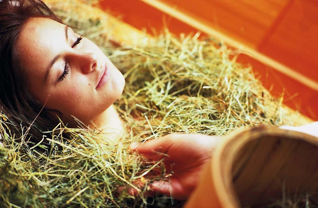 no abbondantemente concimati, si potevano contare solo otto tipi diversi di fiori ed erbe. L’integro mondo che si trova lassù, sui prati alpini, viene difeso, salvaguardato e curato come un gioiello prezioso anche dal Naturhotel Moosmair, dove si continua ad attribuire grande valore alle antiche conoscenze ed alle tradizioni tramandate per generazioni e generazioni. Già secoli fa, infatti, i contadini di montagna scoprirono per caso l’effetto benefico e lenitivo che le piante alpine avevano sulla loro schiena malconcia e sulle loro ossa logore. Quando, infatti, dopo le dure giornate di lavoro sugli scoscesi pendii si fermavano a dormire nei fienili sul fieno appena falciato, si accorgevano di come, la mattina dopo, tornavano ad essere pieni di energia e soprattutto liberi dai dolori articolari. Altrove i bagni di fieno possono essere di tendenza ed avere il carattere di evento, ma al Moosmair di Acereto, invece, sono un concetto fondante. Nelle stanze del Naturhotel, all’arrivo, si trova un questionario con sette domande a cui, volendo, si può rispondere. Un modo per conoscere sé stessi e le proprie caratteristiche psicofisiche. Anneres Ebenkofler nel corso degli anni ha studiato come nutrizionista olistica, ha appreso moltissimo sull’erboristeria tradizionale e