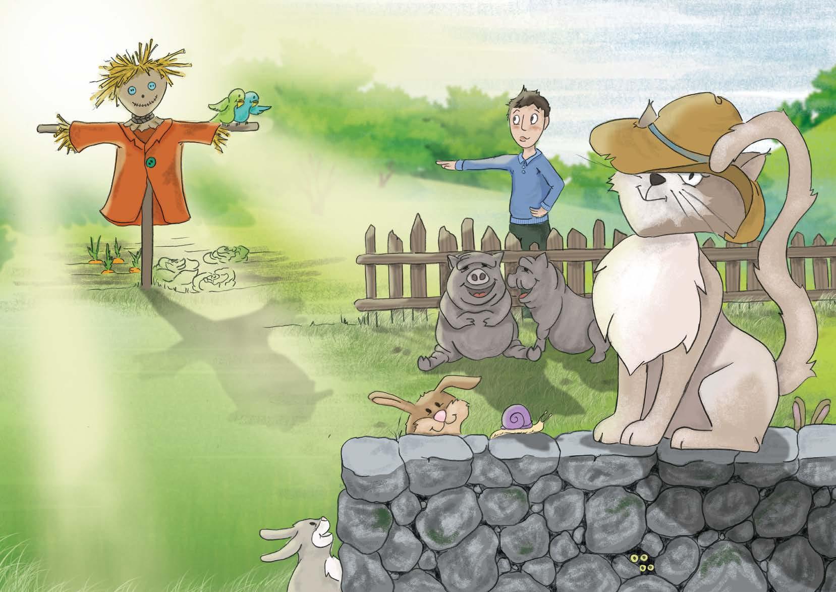 “Ah, finalmente!“, esclama Simon in quel preciso momento, “Ecco dov’era volato il cappello dello spaventapasseri!“