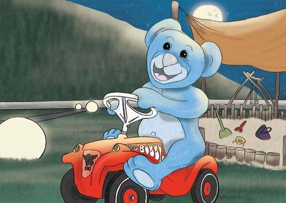 Corre giù per le scale e individua la sala da pranzo dove, felice, si spalma tanto miele su una bella fetta di pane e sorseggia un bicchiere di latte. Dopo lo spuntino ristoratore, l’orsacchiotto corre fuori e si fa un giretto su una macchinina cavalcabile, prima di dirigersi verso il giardino. Sale sull’altalena e, un po’ timidamente, comincia a darsi la spinta. Presto però ci prende gusto e dondola sempre più veloce e sempre più in alto! Nel frattempo, Pietro continua a dormire profondamente e sogna sette nani. L’orsacchiotto non ha ancora finito di divertirsi. Si tuffa in piscina e fa un bel giro a nuoto. Poi sale le scale dello scivolo a tubo gigante e yuhuuuu… sfreccia velocissimo verso il basso. Tutto zuppo si accomoda nella sauna per asciugarsi.