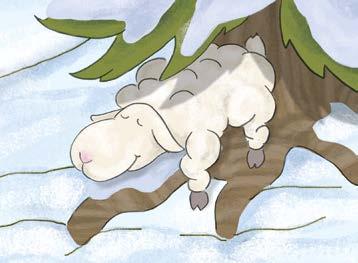Holly si addentra nel bosco, immersa nei suoi pensieri. Poi si ferma di colpo, realizzando di essersi persa. Intorno a lei tutto è ovattato e molto diverso dal solito. Holly ha un’idea: basta seguire le impronte nella neve per ritrovare la strada di casa. Detto fatto: Holly si riavvia verso il suo ovile. Ma camminare nella neve è molto più faticoso che camminare su un prato e Holly comincia a sentire la stanchezza. Decide così di sdraiarsi sotto un albero per riposarsi un pochino, prima di rimettersi in marcia.