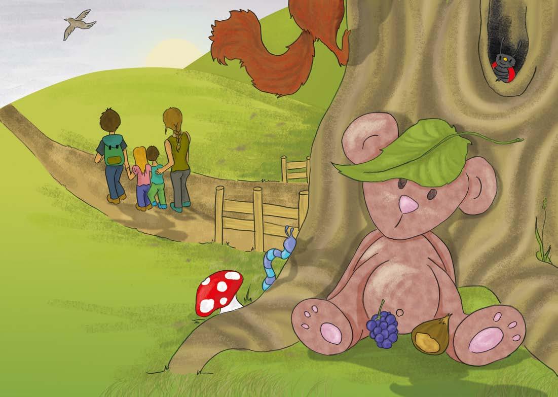 “Dov’è Teddy?“ Insieme a Tim, ritorna di corsa alla Malga Fane e raggiunge l’albero dove ha nascosto l’orsacchiotto.