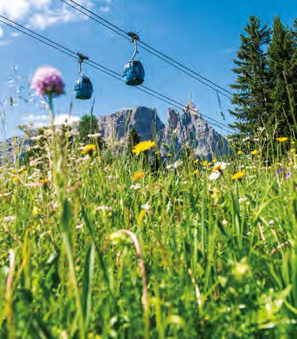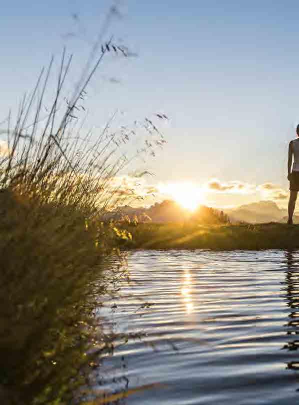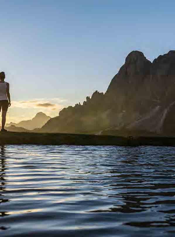 ci incamminiamo verso il rifugio Corno di Sotto. Questa passeggiata impegnativa ci porta attraverso l‘Alpe di Barbiano alla distilleria di olio di pino mugo, al luogo mistico del “Pfannenstiel” e in ne al punto più alto del giro. Il panorama di 360° lungo il cammino è impressionante. Proprio per questo il Corno del Renon ha la fama di montagna con la vista più a ascinante dell`Alto Adige. A cielo limpido la vista si estende su quaranta cime alpine con 3.000 m di altitudine. Il sentiero continua per le malghe del Renon no alla baita dei pastori. Sulla via del eno, con comode panchine e abbeveratoi in legno raggiungiamo il Rifugio Feltuner Hütte per poi ritornare a Cima Lago Nero.