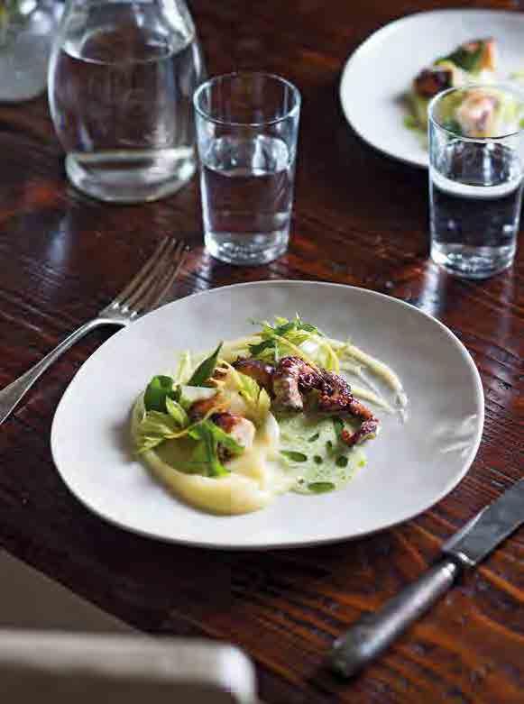 Polpo con crema di patate, aglio orsino e latticello