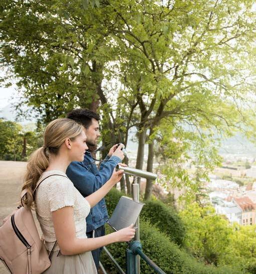Così scriveva Elisabetta d’Austria al consorte Francesco Giuseppe, in una lettera del 17 ottobre 1870, ben prima che a trasportare suggestioni e impressioni, fossero le caption. Vera infuencer della sua epoca, la bella Sissi con la sua imperiale infuenza, contribuì a far circolare nel network delle corti europee la fama della città termale e a renderla meta ambita per esigenti nobildonne, blasonati aristocratici e illustri monarchi. Se potessimo scorrere il feed della mondanità meranese, i post tra la fne del XIX e gli inizi del XX secolo, racconterebbero di regali avvistamenti nelle ville signorili, nei castelli e nei sempre più lussuosi alberghi cittadini. Nel 1896, all’Hotel Imperial, scese la granduchessa Alessandra Iosifovna, nuora di Nicola II di Russia, mentre 15 anni dopo Ksenija Aleksandrovna Romanova, sorella dello Zar, scelse per le sue tre settimane di soggiorno l’esclusivo Palace. Poi arrivarono anche i Savoia. Il re Vittorio Emanuele III e la regina Elena del Montenegro, visitarono spesso la città e i principeschi ricevimenti in loro onore, orchestrati nelle maestose sale del Kurhaus, avrebbero certamente fatto incetta di like Nel 1923, infne, grande entusiasmo dei follower per i soggiorni meranesi di Adalbert von Hohenzollern principe di Prussia, dei reali di Norvegia e dello Scià di Persia (se sia arrivato in città con una o più mogli, è una notizia che si è persa nelle stories…). Imperatrici, re, principi, conti, granduchesse e altre teste coronate: nessun proflo può resistere alla elegante, nobile e regale Merano. Postare per credere. Hashtag #meetmerano.