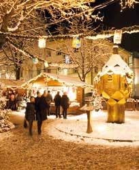 Am Abend die Lichter des Brunecker Weihnachtsmarktes. Im Winter herrscht hier buntes Treiben.