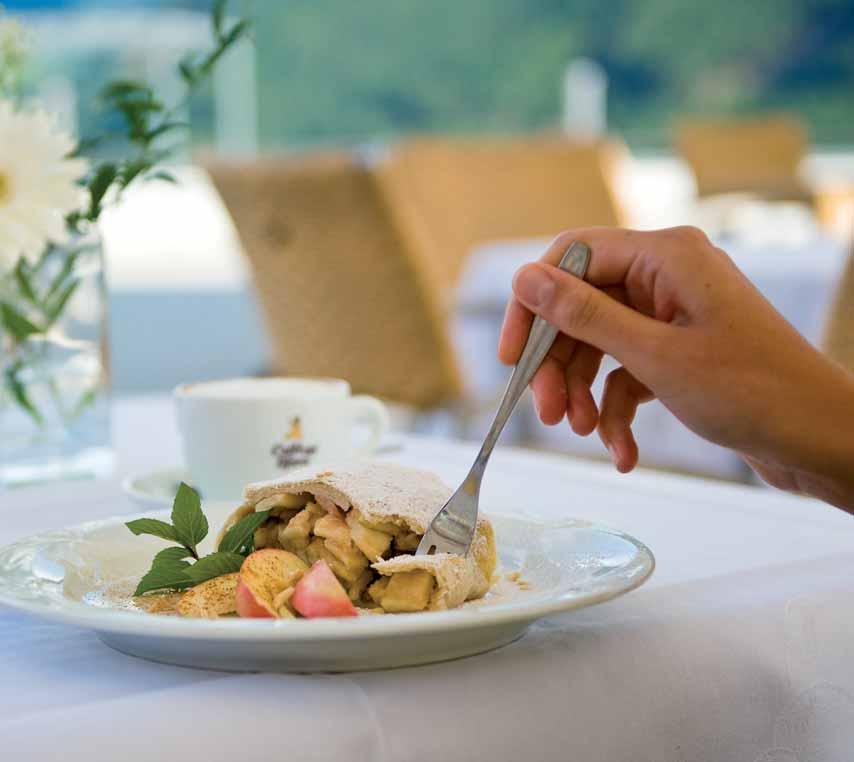 L’amore ed il benessere passano per lo stomaco. Il nostro chef ed i suoi collaboratori si impegnano ogni giorno per soddisfare il vostro benessere a tavola. Nella sala da pranzo panoramica inondata di luce vengono servite specialità tradizionali e mediterranee, preparate con freschissimi prodotti regionali. Piaceri così spensierati svegliano anche l’appetito per la vita!