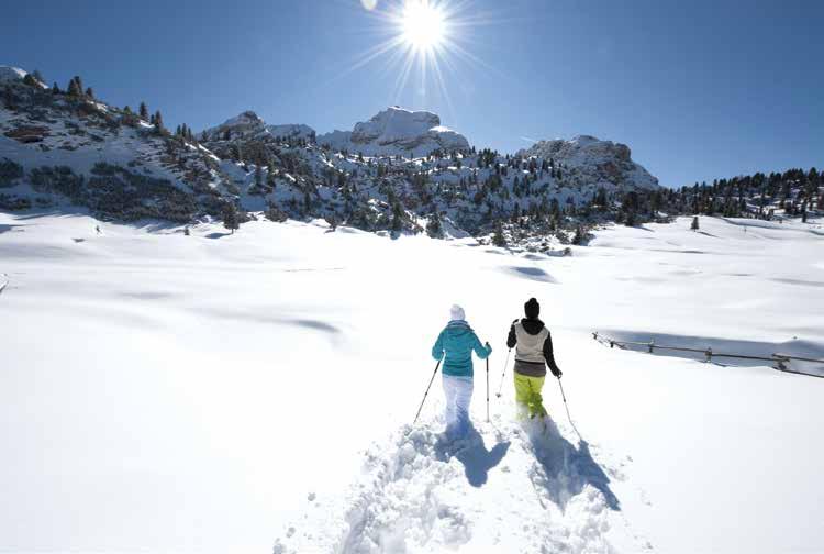 Tagsüber sonnenverwöhnte Genießer auf Schneeschuhwanderwegen, 116 km Pisten, Langlaufloipen.