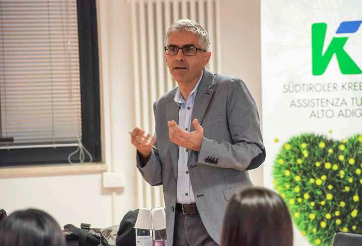 tili polemiche, che mirano a disturbare la pacifica convivenza. L'Assistenza Tumori Alto Adige non fa differenze, a noi non interessa quale lingua parlino i nostri associati, i medici o il personale infermieristico che si prende cura di noi. Siamo una sola famiglia, uniti dal destino comune della malattia e sostenuti dalla comune missione di aiutare i nostri malati e le loro famiglie. Siamo grati a tutti i medici e gli infermieri per i loro sforzi quotidiani e instancabili. A noi in Alto Adige non sembra mancare niente, stiamo bene. Apparentemente. Perché anche da noi ci sono miseria e sofferenza, di solito così ben nascoste che quasi nessuno se ne rende conto. Ma questo è un altro tema ancora. Chiudo la parentesi! È vero: stiamo complessivamente bene in Alto Adige. Non dovremmo mai dimenticarlo. Abbiamo la fortuna di vivere in una regione in cui la politica serve gli interessi della gente, una