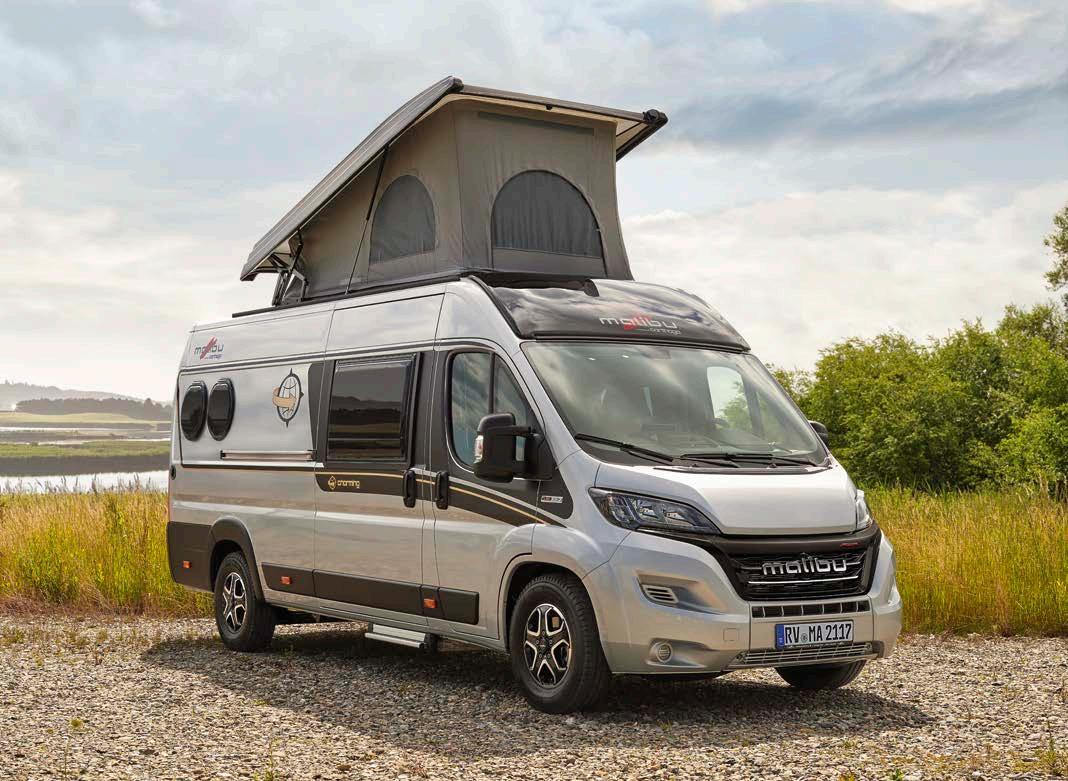 Open feeling of spaciousness with a tremendous amount of freedom of movement and free field of view. XL comfort kitchen with powerful 84 l compressor fridge in a separate universal combination cabinet, extra large working and storage areas as well as extra-wide and tall kitchen drawers and a perfect storage space concept. The Malibu Van diversity is also available as family-for-4 with a hybrid pop-up roof.
